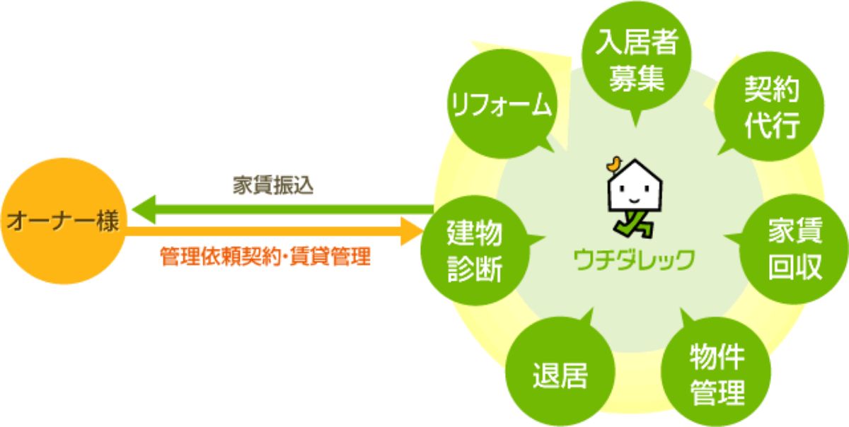 入居者募集から家賃回収、クレーム処理、解約時の立ち会い、敷金の精算、リフォームまでの完全管理システムで、当社が責任をもってお引き受け致します。
